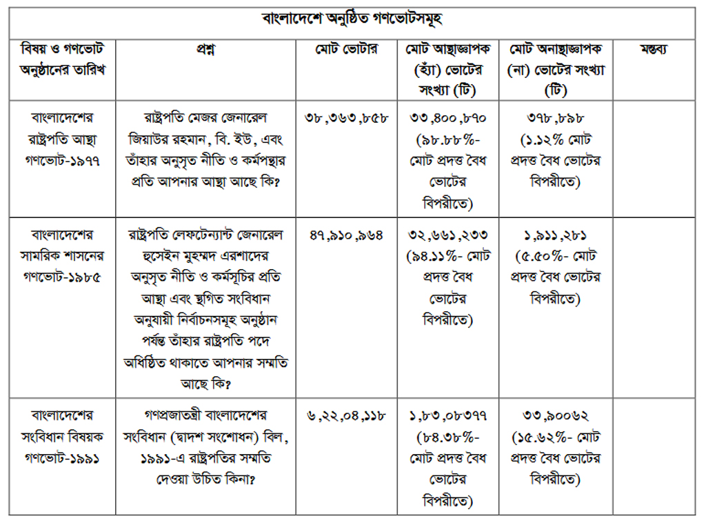 সংসদ নির্বাচনের সময় আলাদা ব্যালটে গণভোটের রায় দেবেন ভোটাররা।